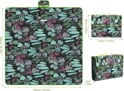 örtüsü, 200 x 200 cm, su geçirmez ve kum geçirmez plaj örtüsü, katlanabilir ve taşınabilir, taşıma saplı, piknik, kuru plaj, kamp, yürüyüş, seyahat, park ve piknik için