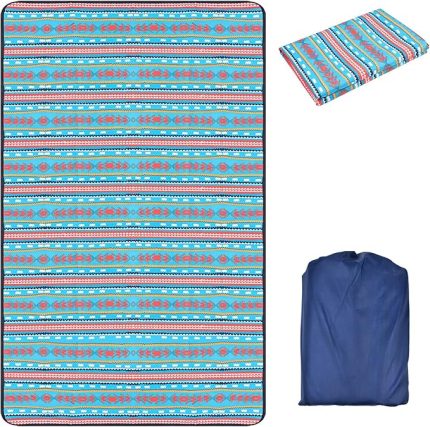 geçirmez destekli piknik örtüsü, büyük, 150 x 200 cm, dış mekan plaj örtüsü, kum geçirmez, su geçirmez, piknik matı, seyahat halısı, kamp, seyahat, yürüyüş ve çim için taşıma çantalı (mavi şeritli)