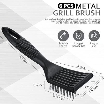 6 adet 8 inç ızgara fırçası hurda siyah ızgara fırçalama fırçası paslanmaz çelik tel ızgara temizleyici fırça barbekü temizleyici aksesuarları kapalı açık ızgara kaldırmak yağ yanmış gıda