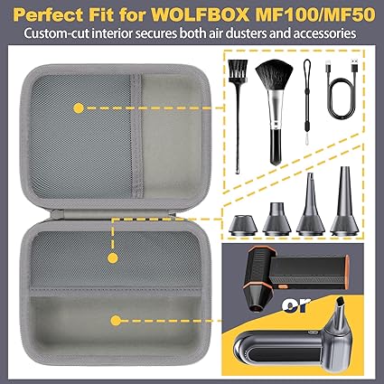 WOLFBOX MF100 MF50 Elektrikli Hava Üfleyici, Elektrikli Toz Püskürtücü ve Turbo Fan için Sert Kılıf, Ağ Cepli Taşıma Çantası, WOLFBOX MF100 MF50 Aksesuarları, Sadece Kılıf