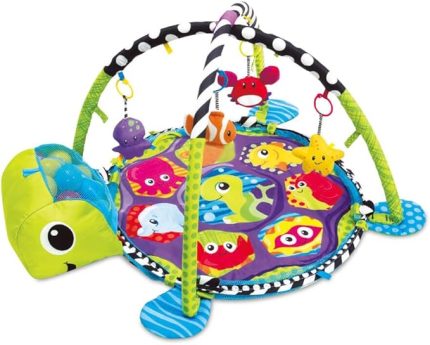 Bebekler için Yaşa Göre Gelişim özellikli ve Türkçe dil destekli mavi Fisher-Price Neşeli Hayvanlar Müzikli oyun minderi ve piyanolu jimnastik merkezi, taşınabilir müzik oyuncağı, HWY49