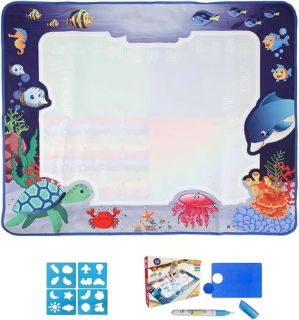 Boyama Halısı, Hayvanlar Temalı,Su İle Boya 10 Dakika Sonra Tertemiz, Renkli Resim Boyama Kitabı Hediyeli, Geometrik Baskı Ve Çizim Karoları Hediye, Su Kalemi İçinde Hediye (Deniz Canlıları)