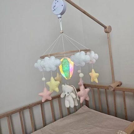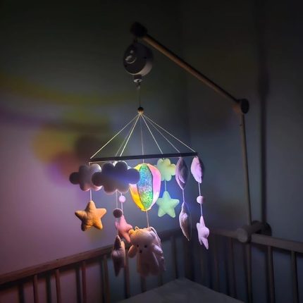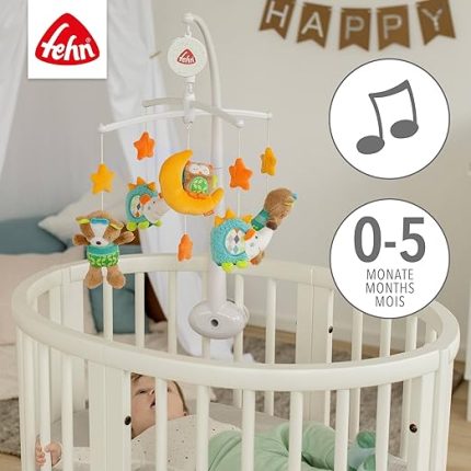 Safari, müzikli dönence – Sevimli hayvanlı bebek uyku yardımcısı müzikli oyuncak – Bebek dönencesi müzik kutusu melodisi “Brahms Wiegenlied” – 0-5 aylık bebekler için