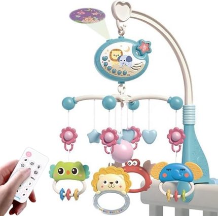 Pilli Işıklı Müzikli Projektörlü Kumandalı Sabitlemeli Dönence Çıngıraklı Dişlikli Bebek Yatıştırıcı Zaman Ayarlı (mavi)