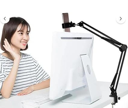 360° Üst Çekim Masaüstü Telefon Tripodu | Ayarlanabilir Süspansiyon Kol, Metal Kaymaz Taban, Evrensel Telefon Tutucu, Siyah