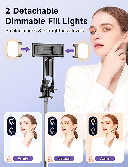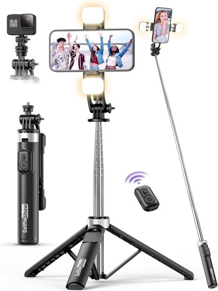 ” Selfie Stick Tripod Işıklı, Uzaktanlı Uzatılabilir Selfie Çubuğu, Hepsi Bir Arada Telefon Klipsi ile Taşınabilir Cep Telefonu Tripod Standı, iPhone 15 14 13 ile Uyumlu Hafif Kamera Tripodu,