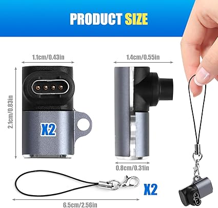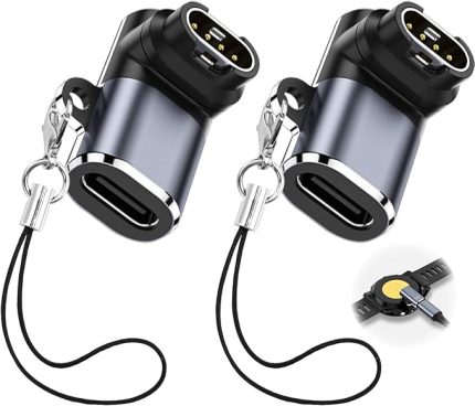 2 adet USB C şarj adaptörü, Garmin Fenix 7/7S/7X, Forerunner 965/265/265S, Vivoactive 5, Venu 3/2/2S ve daha fazlası ile uyumlu, USB Tip C adaptörü, Garmin için, 5V/1A, kordonlu, siyah