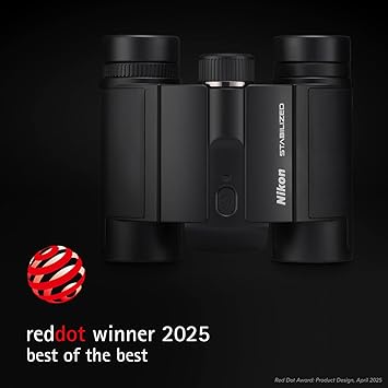 12×25 S Çift Menteşeli Tasarım Çok Katmanlı Lens Kaplamaları, Stabilizasyon Teknolojisi ve Ayarlanabilir Göz Kapağı ile Stabilize Dürbün (Siyah)