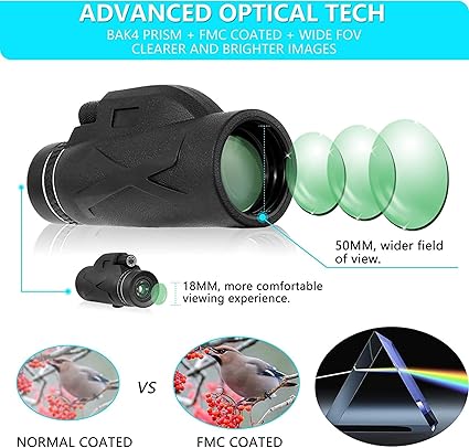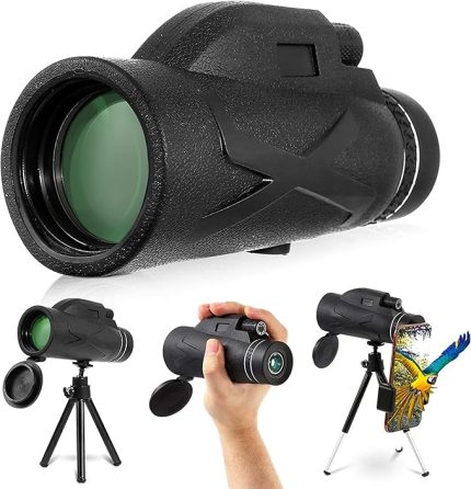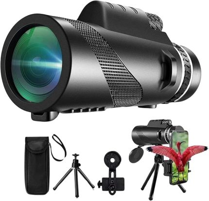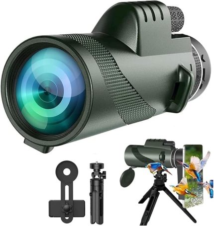 Teleskop – 80×100 Full HD Yüksek Çözünürlük, 10 Km Görüş Mesafesi, 52 mm Objektif Lens, Gece Görüş Destekli, Telefon Tutucu ve Taşıma Çantalı, Tripodlu Profesyonel Monoküler Dürbün