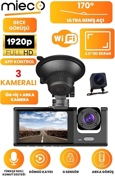 1080P DVR Dash Kamera Ön & İç & Arka Kamera Sürüş Kaydedici 2 İnç Ekran Dash Kamerası Gece Görüşü Döngü Kaydı Tek Tuş Kilidi WiFi sürümü