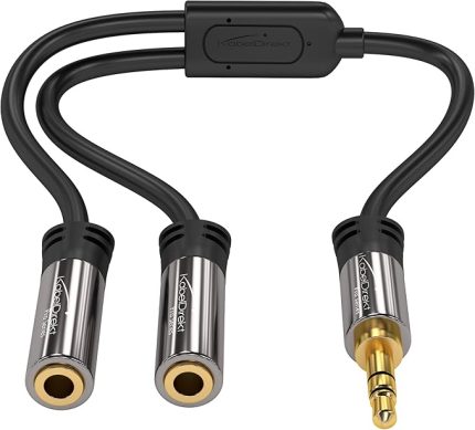 – 3,5mm Y adaptörü ve jak ayırıcı ve AUX dağıtıcı (1 × 3,5mm fiş – 2 × 3,5mm soket, iki kulaklığı bir akıllı telefona/tablete/dizüstü bilgisayara bağlayın, stereo, 10 cm, siyah)