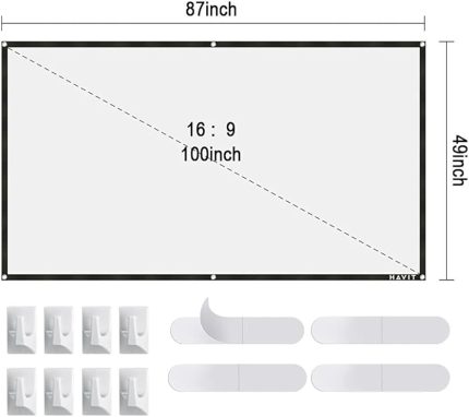 Projektör tuvali, 120 inç 16:9 HD katlanabilir ekran, taşınabilir, kırışmaz, projeksiyon filmleri için, ev sineması için, dış destek, çift taraflı projeksiyon 265 x 149 cm