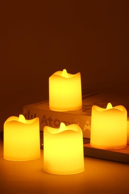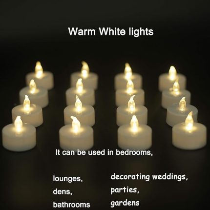 24 adet LED mum, sıcak beyaz ışıklı, alevsiz, 5 x 4 cm, elektrikli titreme, pille çalışır, Noel, cadılar bayramı, düğün, parti dekorasyonu için