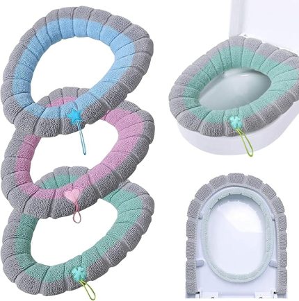 4 Adet Klozet Kapağı Pedi Saplı Klozet Kapağı Kılıfları Yumuşak Banyo Tuvalet Kapağı Kılıfı Minder Kalın Esneyebilir Yıkanabilir Evrensel Boyut