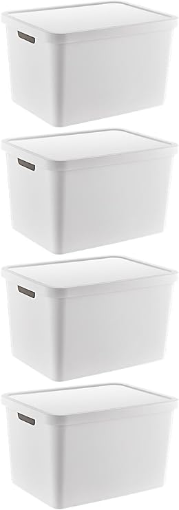 4’Lü Set Stafi Çok Amaçlı Kapaklı Kutu Beyaz 18 LT – BEYAZ, Çok Amaçlı Kapaklı Kutu, Ev-Ofis-Depo İçin, Kapaklı Saklama Kutusu