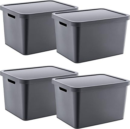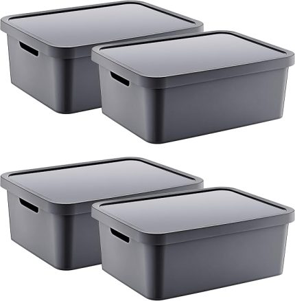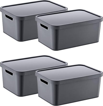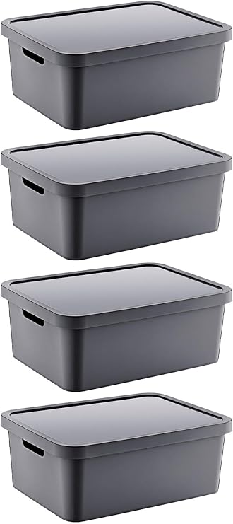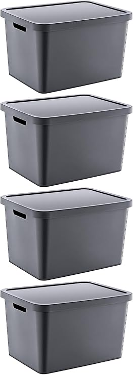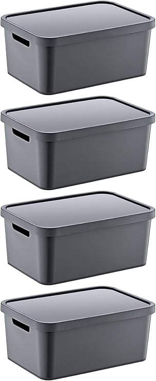 4’Lü Set Stafi Çok Amaçlı Kapaklı Kutu Antrasit 18 LT – ANTRASİT, Çok Amaçlı Kapaklı Kutu, Ev-Ofis-Depo İçin, Kapaklı Saklama Kutusu