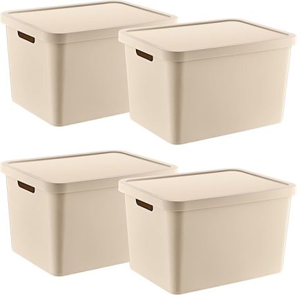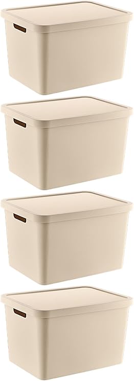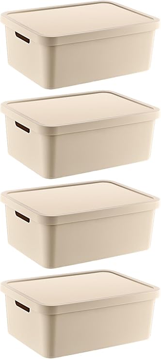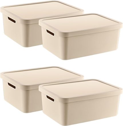 4’Lü Set Stafi Çok Amaçlı Kapaklı Kutu Latte 18 LT – LATTE, Çok Amaçlı Kapaklı Kutu, Ev-Ofis-Depo İçin, Kapaklı Saklama Kutusu