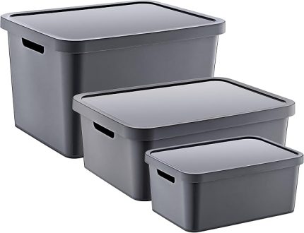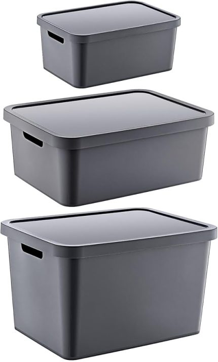 4’Lü Set Stafi Çok Amaçlı Kapaklı Kutu Antrasit 4,5 LT – ANTRASİT, Çok Amaçlı Kapaklı Kutu, Ev-Ofis-Depo İçin, Kapaklı Saklama Kutusu
