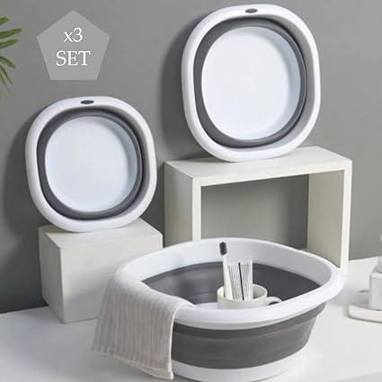 3’Lü Katlanır Badya Set, Katlanabilir Akordiyon Leğen Seti, Yer Kaplamayan Çok Amaçlı Plastik Sepet, 3 Parça Saklama Kutusu
