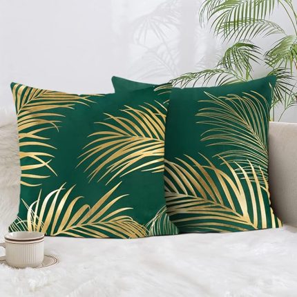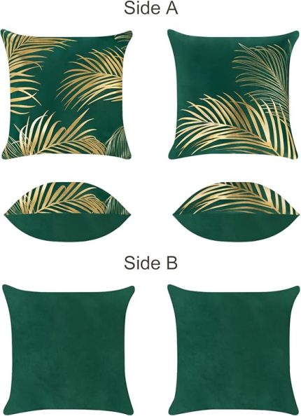 2’li yastık kılıfı seti, altın yapraklar, 45 x 45 cm, kadife, yumuşak, yeşil, dekoratif yastık kılıfı, altın folyo baskılı, dekoratif yastık kılıfları, kanepe, yatak odası, oturma odası,