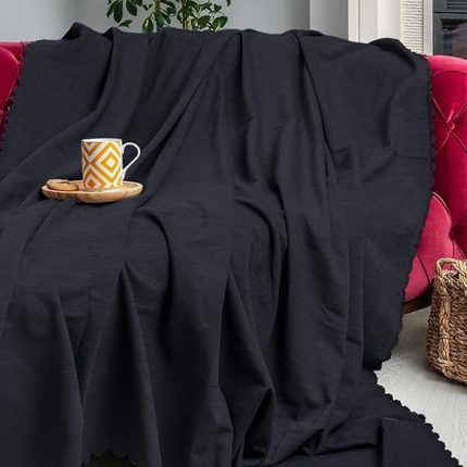 3 Kat Keten Çift Taraflı Süper Yumuşak Nefes Alabilen Dört Mevsim Throw Koltuk Şalı 140x190cm | Koltuk Örtüsü | 140×190 cm Yatak Örtüsü (Antrasit)