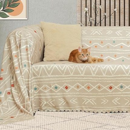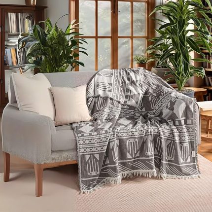100% Pamuk Koltuk Şalı TV Battaniyesi, Geniş 130×170 cm Yüksek Kaliteli Pamuklu Kumaş Dekoratif Koltuk Atma Şal Battaniyeleri (Bohem Gri)