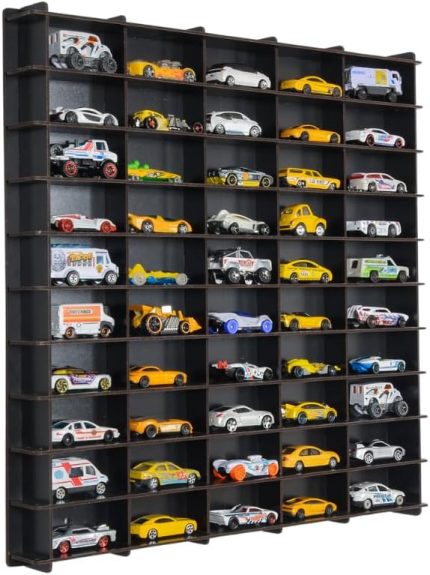 Kapaklı 1/64 Ölçek 50Araç Hotwheels Matchbox metal araç Uyumlu Model Oyuncak Araba Rafı-Eskitme Siyah