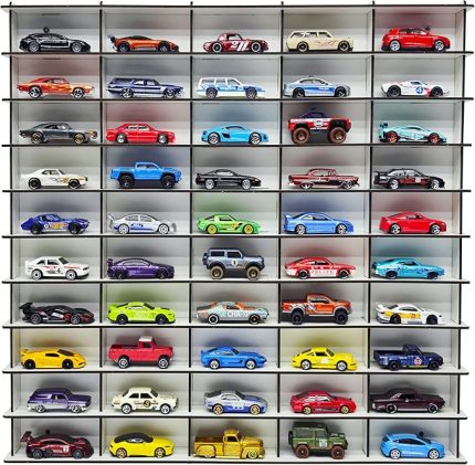 Kapaklı 1/64 Ölçek 50Araç Hotwheels Matchbox metal araç Uyumlu Model Oyuncak Araba Rafı-Beyaz