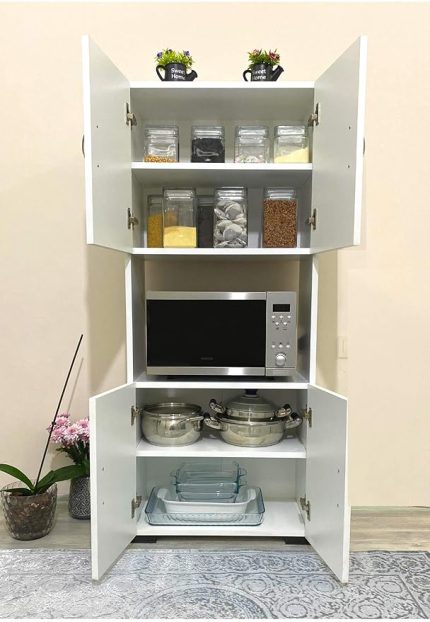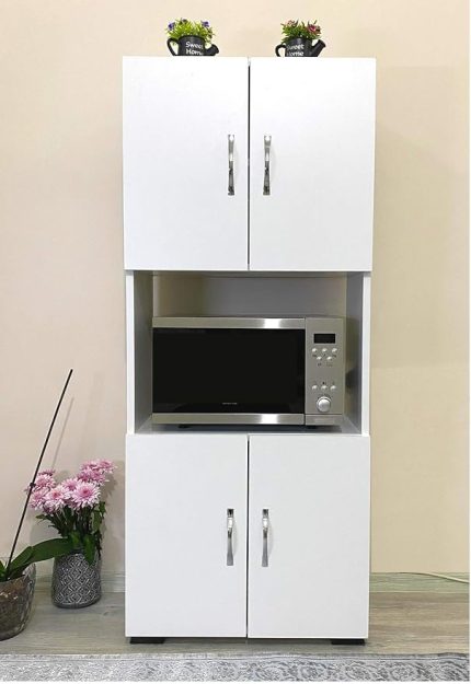 Mobilya 4 Kapaklı Orta Bölmeli Çok Amaçlı Beyaz Mikrodalga Fırın Dolabı, Mini Fırın Mutfak Dolabı
