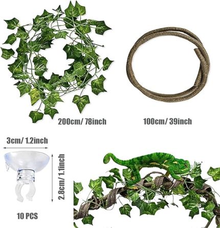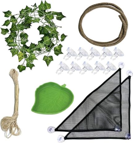 15 adet teraristik kertenkele yaşam alanı dekor aksesuarı, sürüngen hamak ve teraryum tırmanma bitkileri, bukalemun, kertenkele, gecko, yılan, iguana için su kaseli (1)