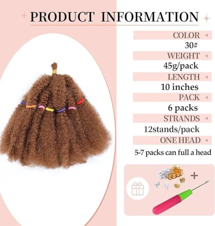 Kinky Hair Bulk Marley Twist Braiding Hair Preseparated Springy Braids for Cuban Twist Hair Faux Locs Crochet sentetik saç uzatmaları kadınlar için (30#, 25,5 cm – 6)