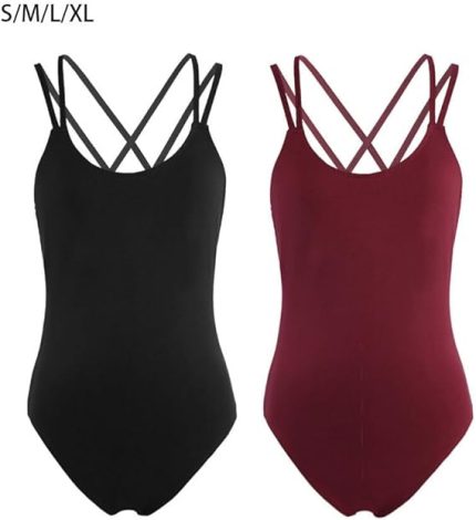 Geniş Uygulamalar Çok Yönlü Performanslar İçin Bale Dans Tek Parça Elbise Askılı Çapraz Sırtlı Bale Giyimi Polyester, Şaraplanmış L