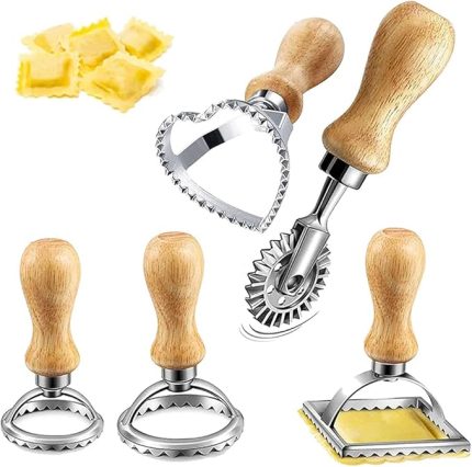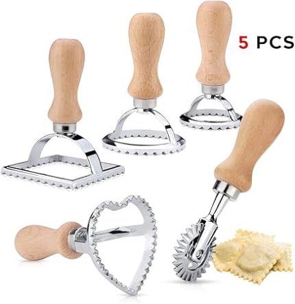 5 adet paslanmaz çelik ravioli kesici, ravioli kesici şekillendirici, ahşap saplı mantı şekillendirici, ravioli damgası, paslanmaz çelik ravioli kurabiye kalıbı, ravioli, makarna, köfte aleti için