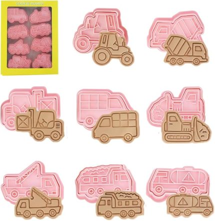 8 adet bisküvi kalıbı, araba, bisküvi kalıbı, çocuk, kurabiye kalıbı, taşıma malzemesi, plastik, 3D araç kalıp seti