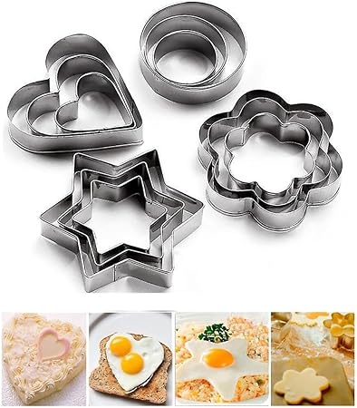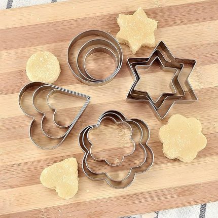 12 Parça Paslanmaz Çelik Kurabiye Kalıbı Seti – Kalp, Yıldız, Çiçek ve Daire Şekilli 301 Kalite Metal Hamur Kesici – Dayanıklı ve Hijyenik Kurabiye Şekillendirici