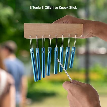 Chimes Perküsyon – 8 Sesli Ahşap Yoga Zili – Dayanıklı Alüminyum Tüp Yapılı Okul Sınıfı ve Ev İçi Kullanım İçin Vuruş Çubuğu ile Başlangıç Seviye Müzik Ekipmanı