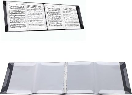 A4 Music Sheet koro dosyası, su geçirmez plastik 60 kılıf, kayıt dosyası, hızlı ve rahat nota dosyası, dosya, kağıt, dosyalar için (30 göz, 32 x 24 cm, siyah)