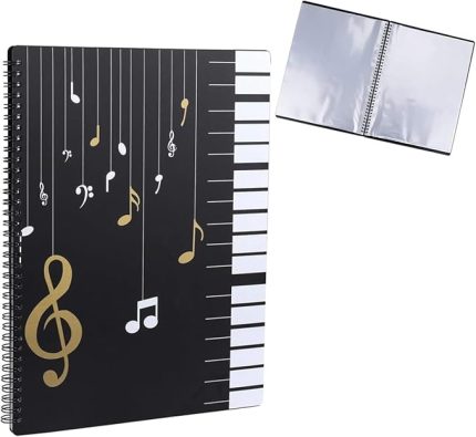 4 taraflı nota klasörü, A4 4 taraflı nota klasörü, piyano, gitar, keman, kağıt, belgeler, müzik severler, öğrenciler için