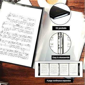 Klasör, 52 Sayfa, 4 Sayfalık Genişlet Piyano Nota bağlayıcı, su Geçirmez, çıkarılabilir Toka tasarımı, Piyano Klavye kemanı viyolonası Için Uygun, A4 Boyutu