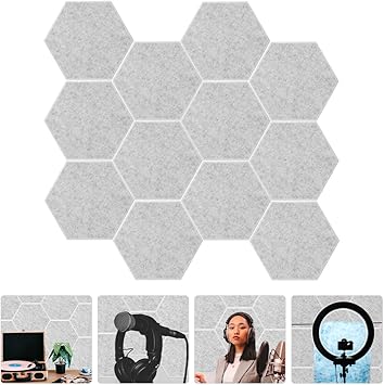 12 adet akustik panel, altıgen akustik emici, ses yalıtım plakaları, ses yalıtım plakaları, ses stüdyosu, ofis, stüdyo ve duvar dekorasyonu için duvar, 30 x 26 x 1 cm