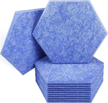 12 adet altıgen akustik plaka, kendinden yapışkanlı, ses emici, ses yalıtımı, yüksek yoğunluklu, duvar, tavan, ahşap ve kapı için, ses emici duvar dekorasyonu (mavi)