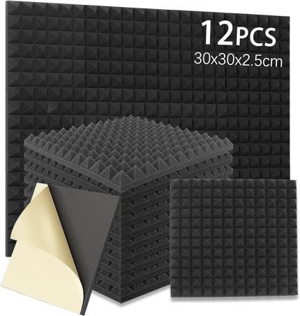12 adet kendinden yapışkanlı akustik plaka, ses geçirmez köpük plakalar, ev için yüksek yoğunluklu ses yalıtım duvar plakaları (siyah)