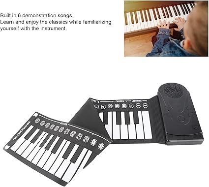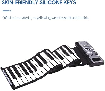 61 Tuşlu Roll Up Piyano Klavyesi Taşınabil Yumuşak Silikon Elektronik Piyano Dahili Hoparlör Ekranlı MIDI Fonksiyonu şkinler ve Yeni Başlayanlar İçin Siyah ve Beyaz