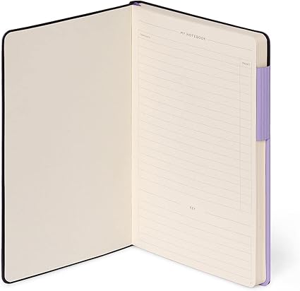 – Not Defteri, Çizgili, Medium, 192 Sayfa, Yumuşak PU Cilt, FSC® Sertifikalı Kağıt, Fildişi Renkli Kağıt 90 g/m², Aylık Planlayıcı, Adres Defteri, Yer İşareti, 13 x 21 cm, Renk Lavanta