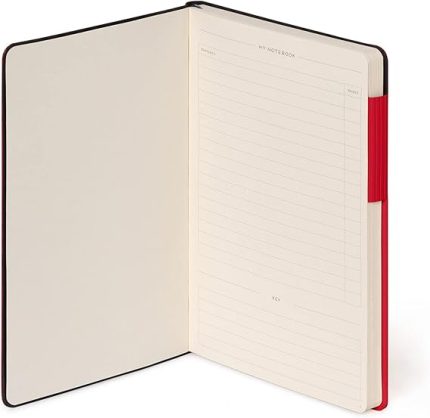 – Beyaz sayfalı not defteri, FSC® sertifikalı kağıt, fildişi kağıdı, 90 g/m², 192 sayfa, yumuşak kapak, lastik bantlı kilit, 13 x 21 cm, renk kırmızı