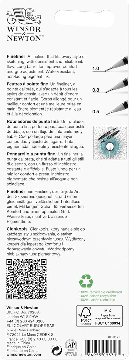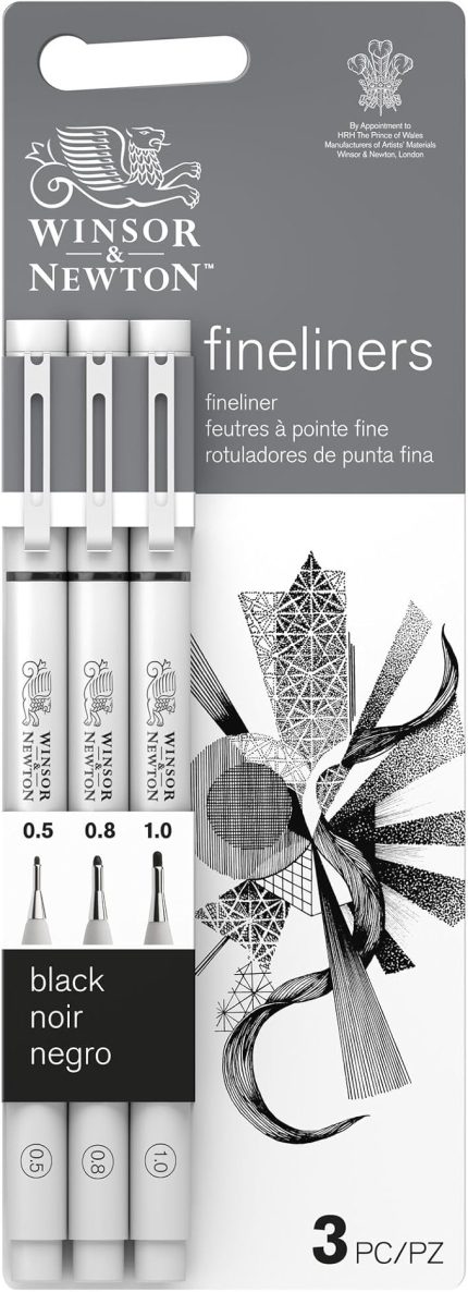 & Newton 0290179 Fineliner Seti, 3 Pigment Liner, Hassas Çizgiler ve Çizgiler için, Yüksek Kalite, Pigment Mürekkep, Suya Dayanıklı, Işığa Dayanıklı Keten Genişliği, 0,5 mm, 0,8 mm, 1,0 mm –