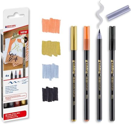 1340 fırça uçlu keçeli kalem, 4 parlak renkli set, esnek fırça ucu
