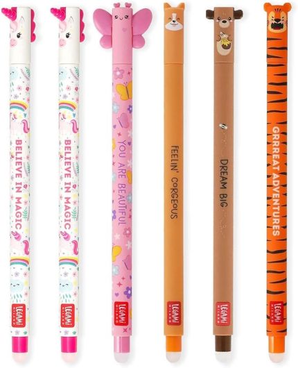 – Termosensitif Silme Mürekkepli 6’lı Silinebilir Jel Kalem Seti, Mürekkep renkleri ve varil tasarımları yelpazesi, 0,7 mm Uç, Unicorn, Kelebek, Corgi, Oyuncak Ayı, Kaplan Tasarımları