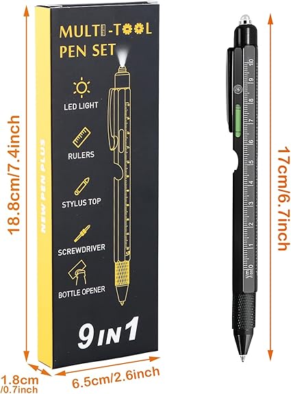1 arada çok fonksiyonlu tükenmez kalem, metal basmalı tükenmez kalem, erkekler için hediye, LED’li taktik kalem, babalar günü hediyesi, Noel (siyah)