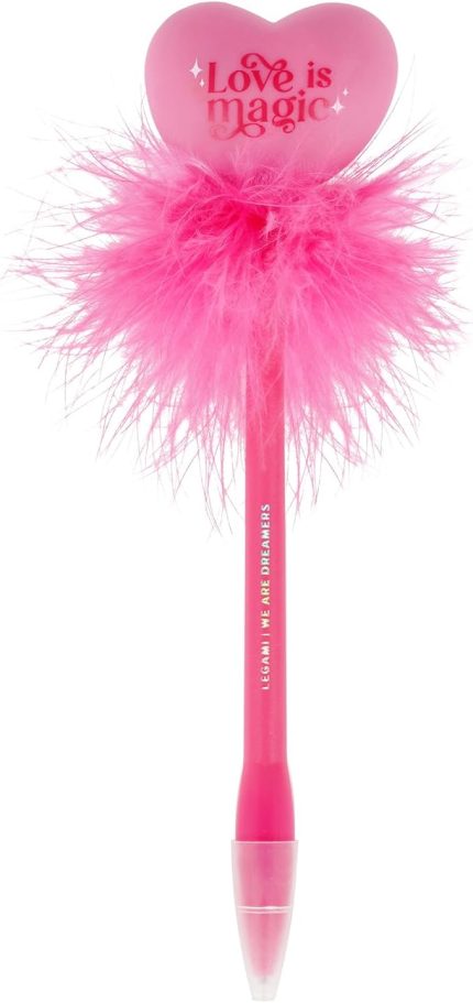 – Açık kalpli tükenmez kalem, Love is Magic, pembe mürekkep, çocuklar ve yetişkinler için LED kalem, uç 0,7 mm, kalp